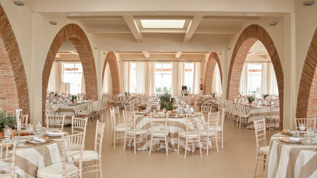 El salón amplio y diáfano de la Hacienda Guadalupe tiene capacidad para más de 400 invitados y marcado por el encanto rústico que le conceden sus arcos. En el salón impera el buen gusto y la comodidad, con unos 800m2 de espacio. Un salón ideal para bodas, celebraciones familiares o cenas de empresa. Cualquier evento gana protagonismo y singularidad en el salón de celebraciones de Hacienda Guadalupe. Un lugar especial en el que celebrar y disfrutar de cualquier evento.