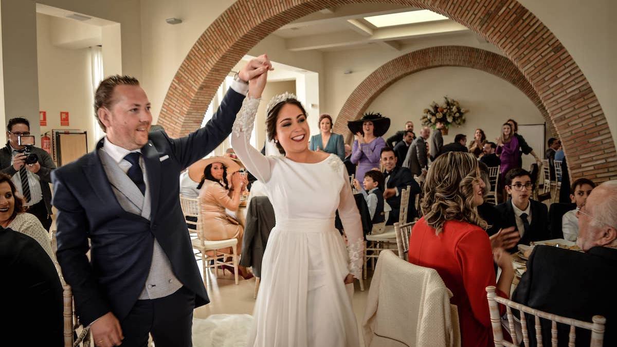 La decoración y el montaje del salón siempre incluye más referencias al lugar donde nos encontramos, al sur, más aún si los novios son originarios de este. Los platos, por ejemplo, recuerdan a ese azulejo hidráulico que remite a lo arabesco. Antes de comenzar con el banquete, los invitados pudieron recoger de ellos sus obsequios, además de ver las etiquetas con sus nombres.